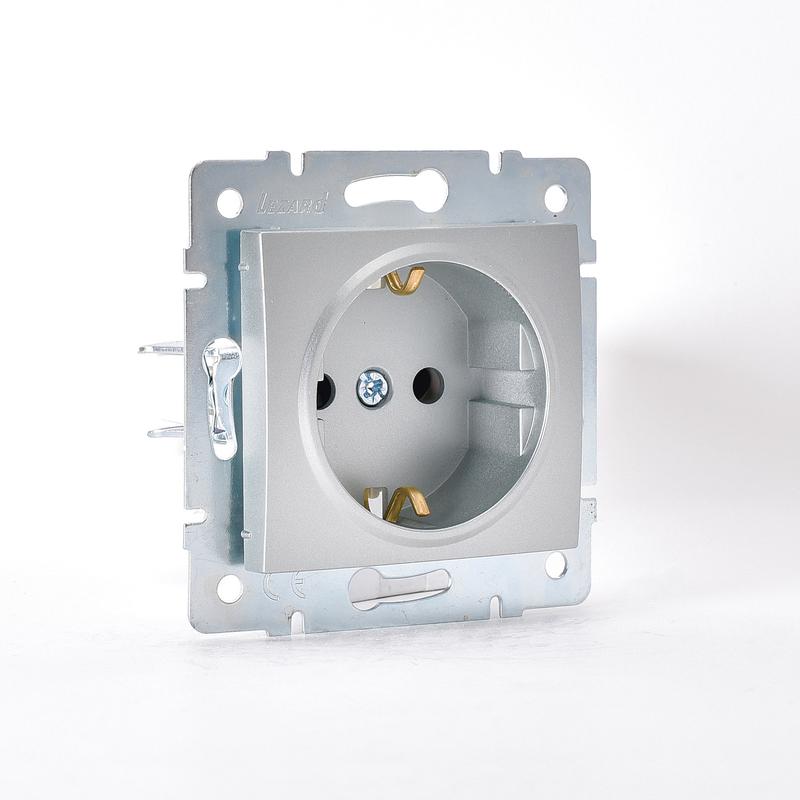 Наимерование продукции: Механизм розетки 1-м СП KARINA защ. шторки с заземл. термопласт серебро мат. LEZARD 707-4388-124B